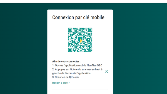 Dirigez votre téléphone vers le code QR sur l'écran de votre ordinateur pour le scanner. Validez la demande d’accès à neuflizeobc.net en suivant les instructions.